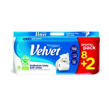 Papier toaletowy Velvet celulozowy delikatnie Biały, 3-warstwowy, 150 listki, 8+2szt.