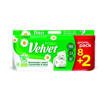 Papier toaletowy Velvet celulozowy Rumianek i Aloes, 3-warstwowy, 8+2szt., biały