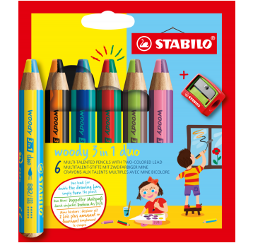 Kredka drewniana Stabilo Woody 3 w 1 DUO mix z temperówką 6 szt.