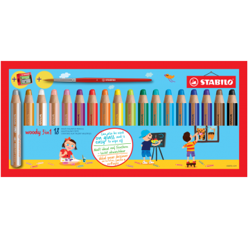 Kredka drewniana Stabilo Woody 3 w 1 mix z temperówką i pędzelkiem 18 szt.