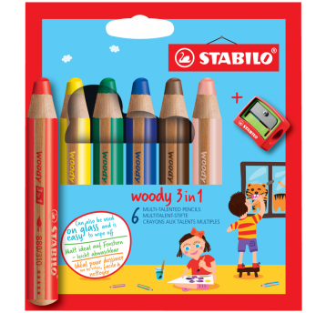Kredka drewniana Stabilo Woody 3 w 1 mix z temperówką 6 szt.