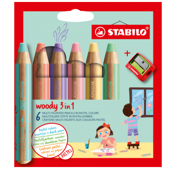 Kredka drewniana Stabilo Woody 3 w 1 pastelowa mix z temperówką 6 szt.