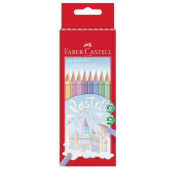 Kredki sześciokątne Faber-Castell Zamek mix 10 kolorów pastelowych