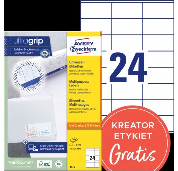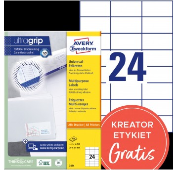 Etykiety uniwersalne Avery Zweckform Ultragrip 70 x 37 mm