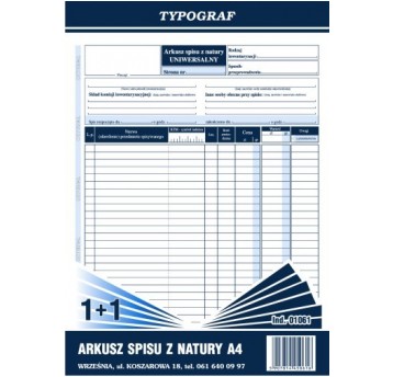 Arkusz spisu z natury (O+1K) Typograf A4