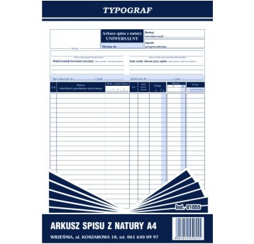 Arkusz spisu z natury Typograf A4