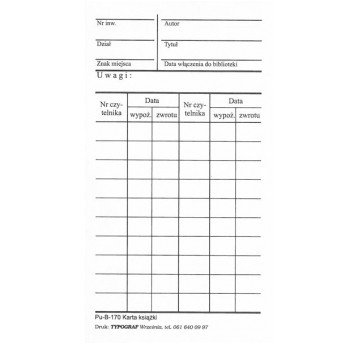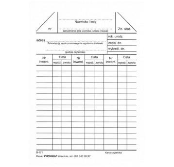 B171 - Karta czytelnika Typograf A6