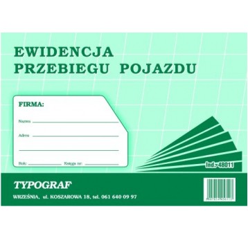 Ewidencja przebiegu pojazdu i kosztów eksploatacji samochodu Typograf A5