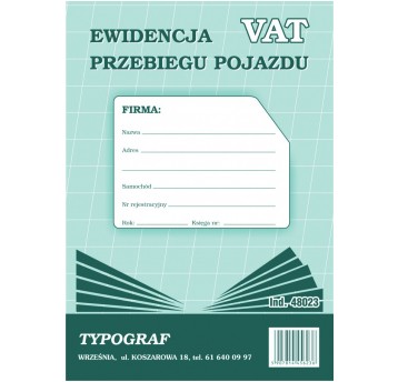 Ewidencja przebiegu pojazdu VAT Typograf A5