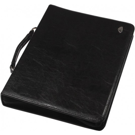 Teczka aktówka wykonana z wysokiej jakości ekoskóry, zamykana na suwak. Wyposażona w: lewa strona - kieszeń przestrzenną - kieszeń zamykaną na suwak - 2 kieszonki na wizytówki - kieszeń z okienkiem na wizytówki - miejsce na długopisy prawa strona - ring 4R do wpinania - klip do utrzymywania notesu lub notatek - grzbiet 50 mm - wymiary teczki 390 x 280 x 55 mm