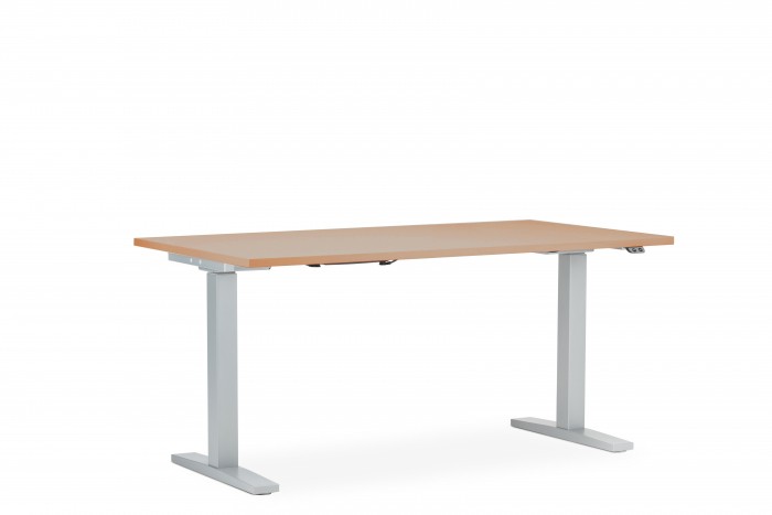 Biurko regulowane eUP posiada: - aluminiową podstawę, - brązowy blat o szerokości 1200 mm i głębokości 800 mm - wysokość całkowita blatu: 700-1200 mm - elektryczna regulacja wysokości - grubość blatu: 25 mm - blat prostokątny dwustronnie melaminowany - przelotkę na kable po lewej i prawej stronie blatu - podstawę typu„T”, - kolumnę dwusegmentową - ramę teleskopową