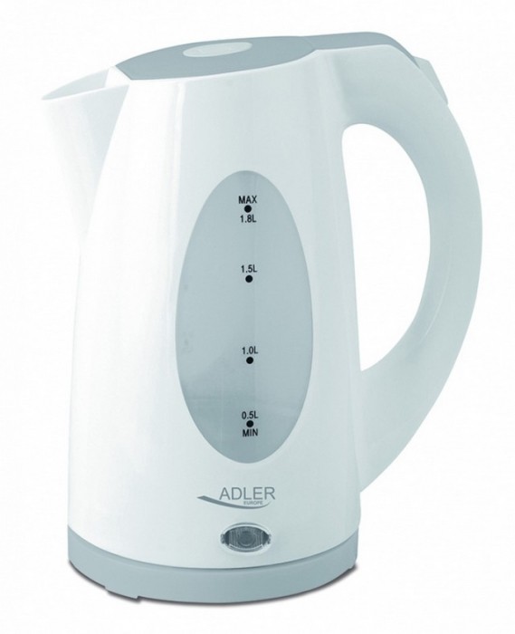 Czajnik rodzinny, pojemność min. 0,5 l, obrotowa podstawa i płaskie dno, nowoczesne wzornictwo, wskaźnik poziomu wody z podziałką, filtr zatrzymujący osady wapnia, grzałka ze stali szlachetnej, automatyczne wyłączanie po zagotowaniu wody, lampka kontrolna, rok gwarancji
