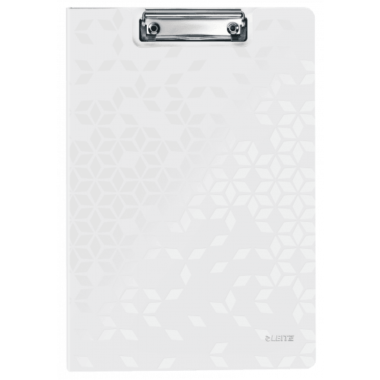 Deska z klipem i okładką Leitz WOW w kolorze białym metalicznym. - doskonała do pracy w terenie, na konferencji czy zebraniu - wykonana z wysokiej jakości polistyrenu, w modnych kolorach WOW - mocny mechanizm przytrzymujący kartki - dodatkowa kieszeń na luźne dokumenty i niewielkie przedmioty - z zaczepem do powieszenia - mieści do 80 kartek A4.