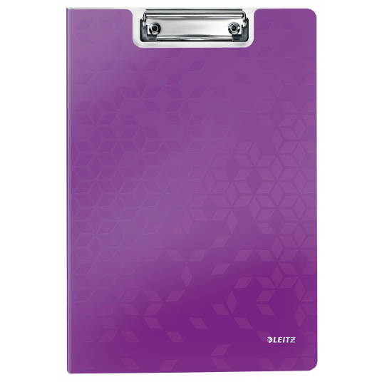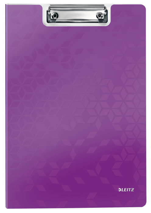 Deska z klipem i okładką Leitz WOW w fioletowym metalicznym. - doskonała do pracy w terenie, na konferencji czy zebraniu - wykonana z wysokiej jakości polistyrenu, w modnych kolorach WOW - mocny mechanizm przytrzymujący kartki - dodatkowa kieszeń na luźne dokumenty i niewielkie przedmioty - z zaczepem do powieszenia - mieści do 80 kartek A4.