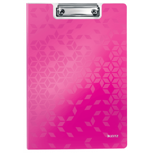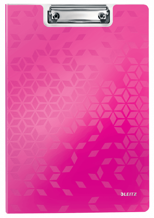 Deska z klipem i okładką Leitz WOW w kolorze różowym metalicznym. - doskonała do pracy w terenie, na konferencji czy zebraniu - wykonana z wysokiej jakości polistyrenu, w modnych kolorach WOW - mocny mechanizm przytrzymujący kartki - dodatkowa kieszeń na luźne dokumenty i niewielkie przedmioty - z zaczepem do powieszenia - mieści do 80 kartek A4.