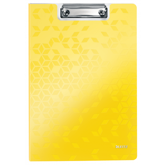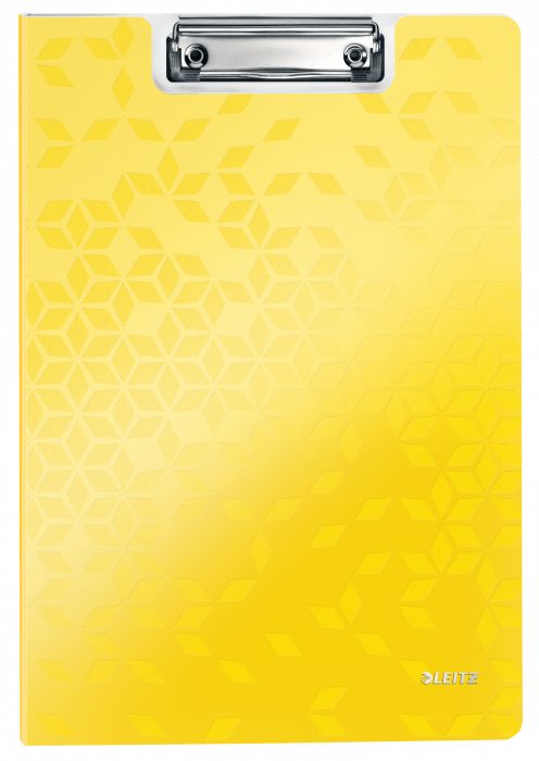 Deska z klipem i okładką Leitz WOW w kolorze żółtym metalicznym. - doskonała do pracy w terenie, na konferencji czy zebraniu - wykonana z wysokiej jakości polistyrenu, w modnych kolorach WOW - mocny mechanizm przytrzymujący kartki - dodatkowa kieszeń na luźne dokumenty i niewielkie przedmioty - z zaczepem do powieszenia - mieści do 80 kartek A4.