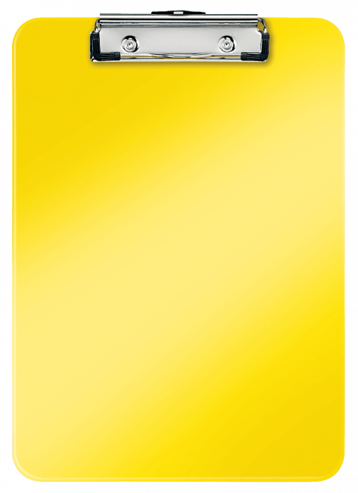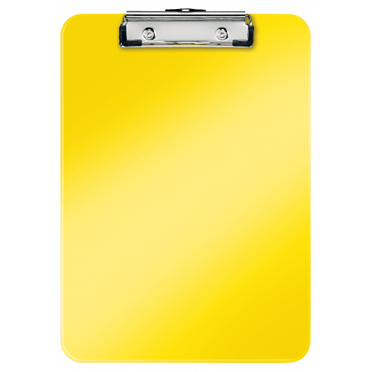 Deska z klipem Leitz WOW w kolorze żółtym metalicznym. - doskonała do pracy w terenie, na konferencji czy zebraniu - wykonana z wysokiej jakości polistyrenu, w modnych kolorach WOW - mocny mechanizm przytrzymujący kartki - z zaczepem do powieszenia - mieści do 80 kartek A4.