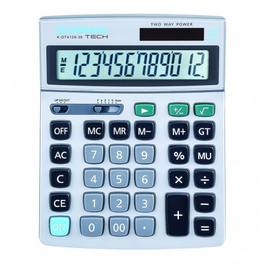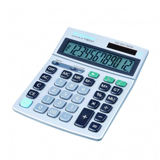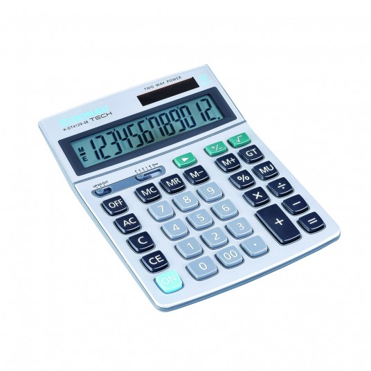 - kalkulator z 12-cyfrowym wyświetlaczem z zasilaniem bateryjno-solarnym