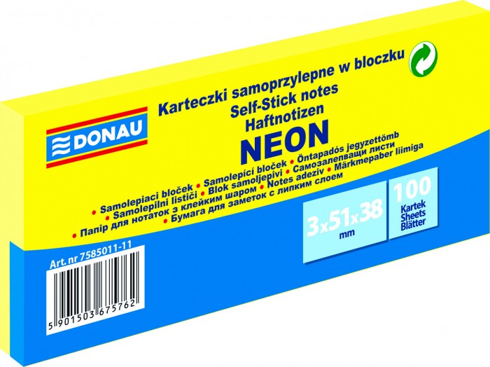 Karteczki samoprzylepne Donau 38 x 51 mm żółte neo