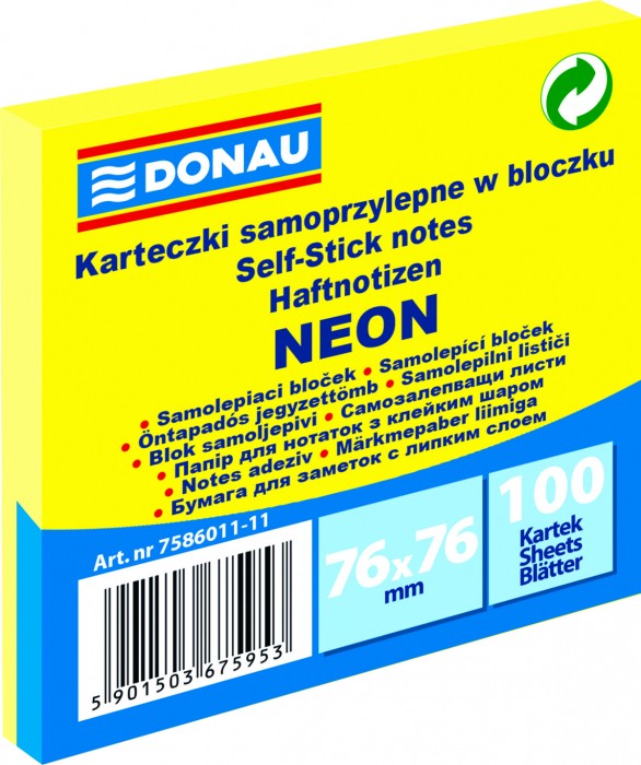 - uniwersalne kolorowe karteczki, idealne do przekazywania wiadomości - gramatura: 70 g/m2 (+/- 4%) - klej umieszczony wzdłuż dłuższego boku - klej usuwalny za pomocą wody - posiadają oznaczenie Zielony Punkt (Der Grüne Punkt) - oznaczające udział w systemie recyklingu i odzysku odpadów wynikający z przepisów prawa polskiego i UE - zabezpieczone folią z charakterystycznym czerwonym paskiem ułatwiającym otwieranie