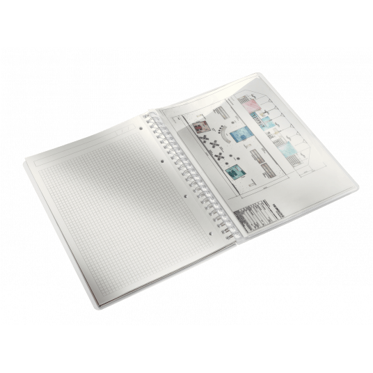 Notatnik z eleganckim geometrycznym wzorem na okładce i przezroczystą kieszonką na luźne notatki prezentuje perfekcyjne połączenie stylu i funkcjonalności.