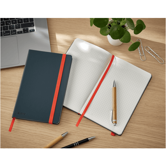 Notatnik Leitz Cosy Soft Touch w formacie A5 i twardej oprawie doskonale sprawdzi się do robienia codziennych notatek i wygodnie zmieści się w torebce lub torbie na laptopa.