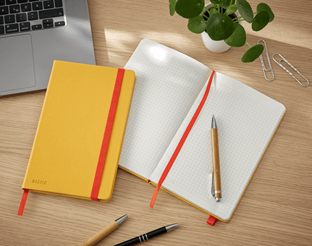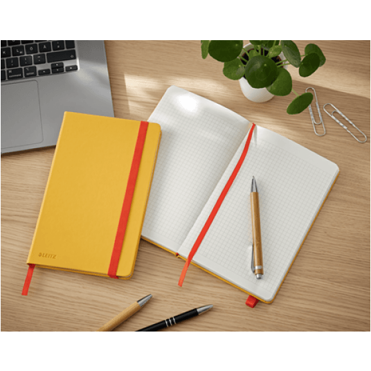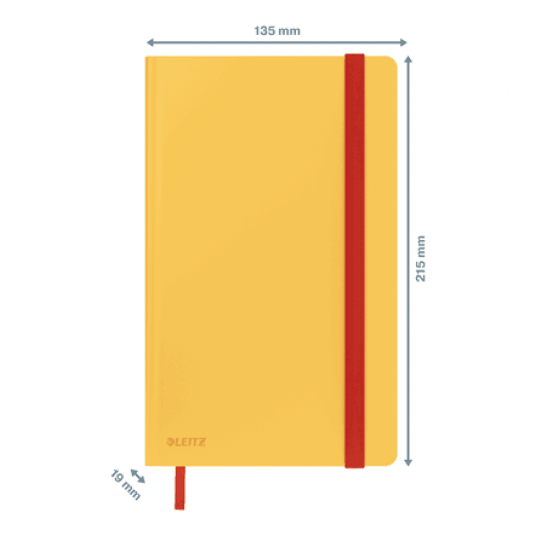 Notatnik Leitz Cosy Soft Touch w formacie A5 i twardej oprawie doskonale sprawdzi się do robienia codziennych notatek i wygodnie zmieści się w torebce lub torbie na laptopa.