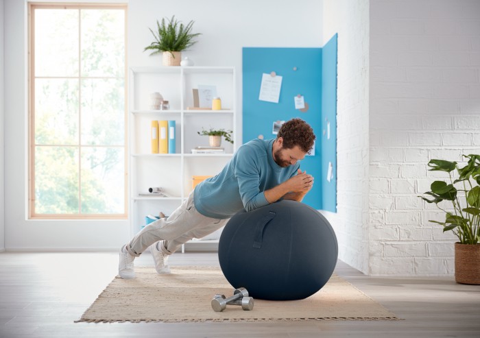 Stylowa, zaprojektowana zgodnie z zasadami ergonomii piłka do aktywnego siedzenia i ćwiczeń.