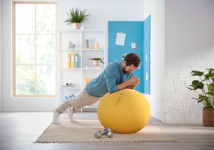 Stylowa, zaprojektowana zgodnie z zasadami ergonomii piłka do aktywnego siedzenia i ćwiczeń.