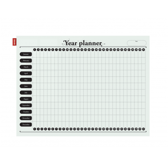 - tablica z powierzchnią suchościeralno-magnetyczną z nadrukowanym terminarzem do planowania tygodniowego, miesięcznego lub rocznego