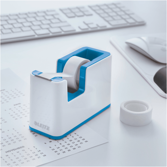 Atrakcyjnie zaprojektowany podajnik taśmy klejącej umożliwiający wygodną obsługę jedną ręką. - bardzo stabilny i ciężki, nie przesuwa się na biurku, umożliwiając obsługę jedną ręką - z super ostrymi ostrzami do bezproblemowego odrywania taśmy - do taśm o wymiarach 19 mm x 33 mm - prosta i szybka wymiana taśmy - w komplecie z taśmą - kolor: biało-niebieski.