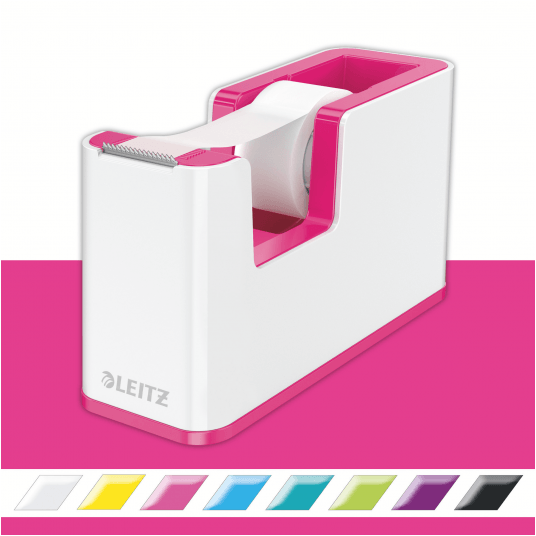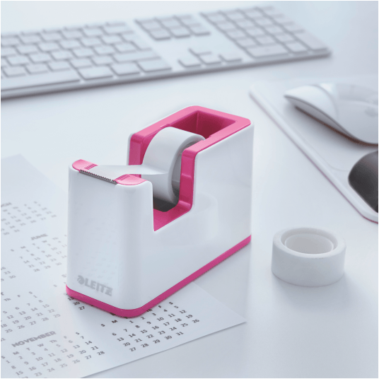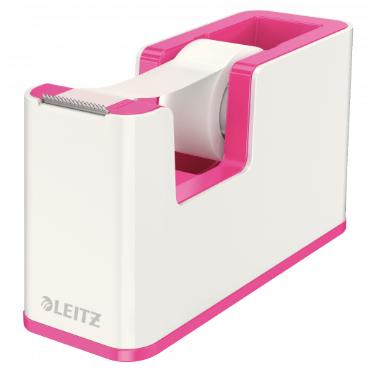 Atrakcyjnie zaprojektowany podajnik taśmy klejącej umożliwiający wygodną obsługę jedną ręką. - bardzo stabilny i ciężki, nie przesuwa się na biurku, umożliwiając obsługę jedną ręką - z super ostrymi ostrzami do bezproblemowego odrywania taśmy - do taśm o wymiarach 19 mm x 33 mm - prosta i szybka wymiana taśmy - w komplecie z taśmą - kolor: biało-różowy.