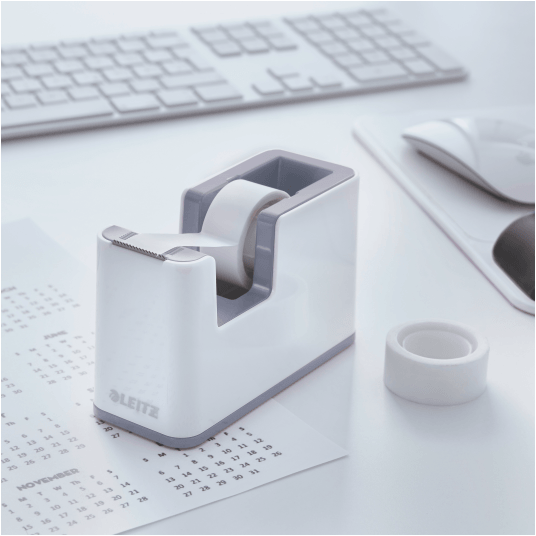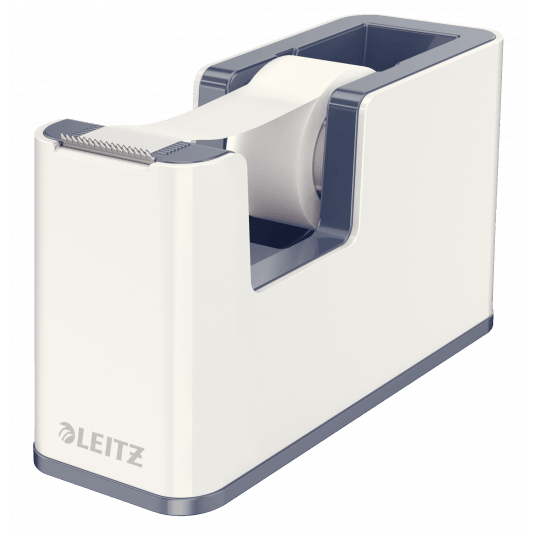 Atrakcyjnie zaprojektowany podajnik taśmy klejącej umożliwiający wygodną obsługę jedną ręką. - bardzo stabilny i ciężki, nie przesuwa się na biurku, umożliwiając obsługę jedną ręką - z super ostrymi ostrzami do bezproblemowego odrywania taśmy - do taśm o wymiarach 19 mm x 33 mm - prosta i szybka wymiana taśmy - w komplecie z taśmą - kolor: biało-szary.