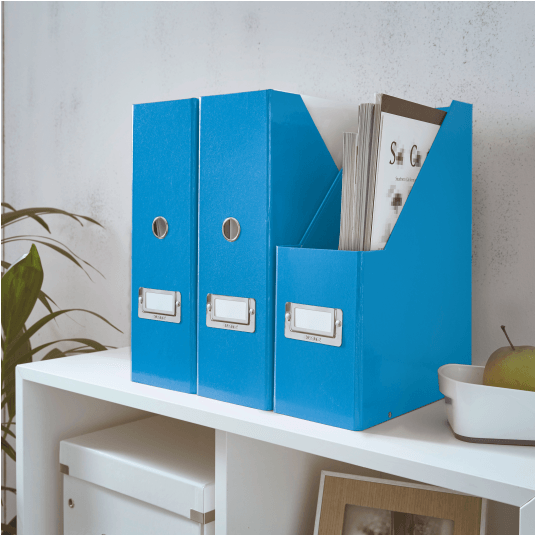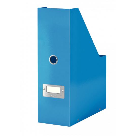 Przykuwający wzrok, stylowy pojemnik na czasopisma i katalogi.
