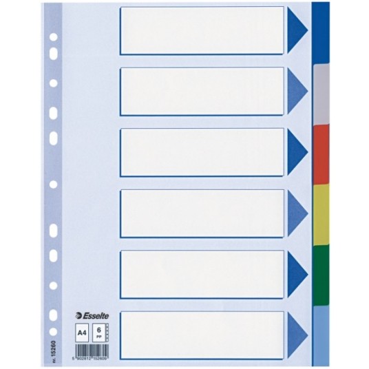 Przekładki plastikowe Esselte PP A4 kolorowe 6 ark