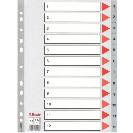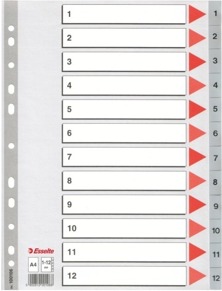 - przekładki i indeksy w kolorze jasnoszarym - multiperforowane - pasują do każdego segregatora - z kartą informacyjno - opisową, której pasek z perforacją jest wzmocniony folią - wymiary: A4 - 225 x 297 mm