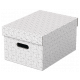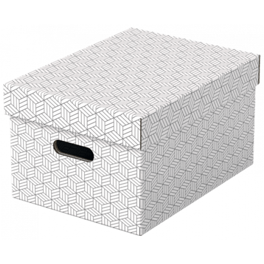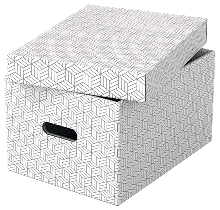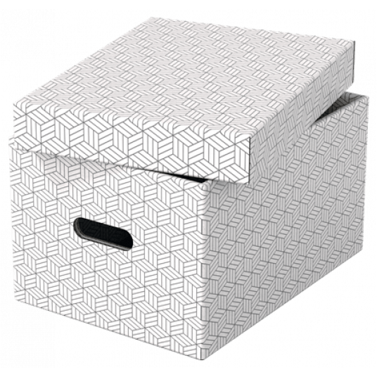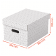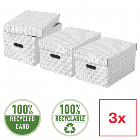 - Zestaw trzech nowoczesnych i stylowych tekturowych pudełek ze zdejmowaną pokrywą, idealnych do organizacji nowego miejsca do przechowywania w domu.