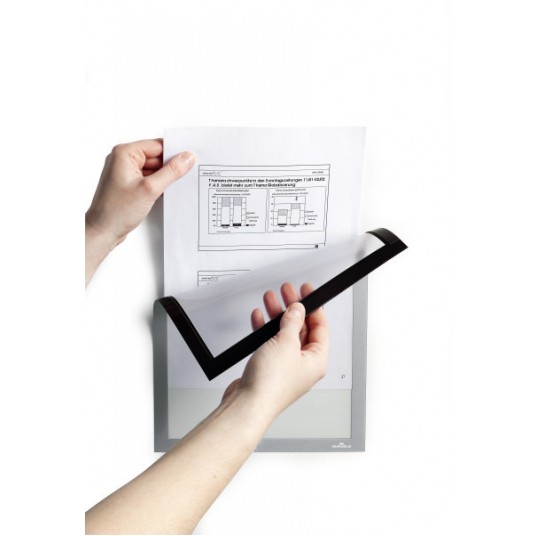 - kolorowa ramka informacyjna z magnetycznymi paskami mocującymi na informację w rozmiarze A4 - do zastosowania w pionie lub poziomie - prosta i szybka wymiana dokumentów przez odchylenie koszulki - transparentna, twarda folia chroni dokumenty - magnez może być przymocowany do metalowych powierzchni