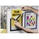 '- przytwierdzenie informacji do wewnętrznych szklanych powierzchni, w tym również zakrzywionych, takich jak np. szyby samochodowe - odporna na ciepło ok. 70 °C; odporna na promieniowanie UV do 2 lat - można ją usunąć bez pozostawienia śladów - do wielokrotnego użytku - ława wymiana informacji dzięki szczelinie na tylnej ścianie - może być używana w formacie pionowym i poziomym