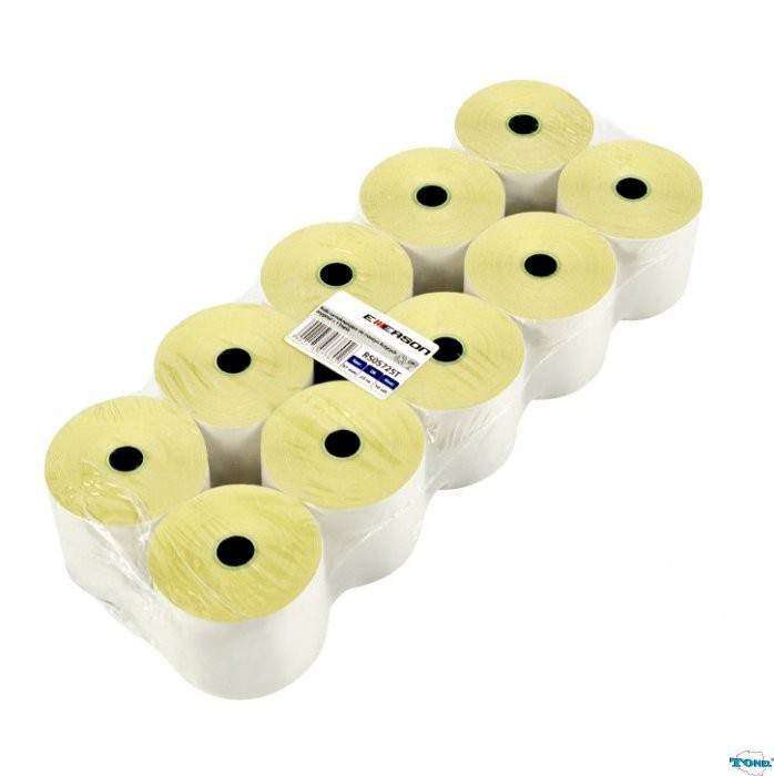 Rolki samokopiujące Emerson przeznaczone są do kas oraz terminali płatniczych. - szerokość rolki: 76 mm - długość rolki: 25 m - przy produkcji rolek kasowych z kopią (samokopia) zastosowano wysokiej jakości papier samokopiujący, którego producent udziela 5 lat gwarancji na zdolność kopiowania papieru i 25 lat gwarancji na trwałość kopii.