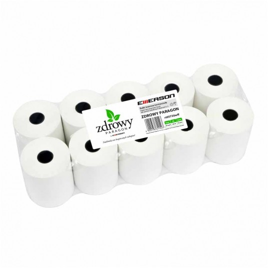 Rolki termiczne Emerson produkowane są z surowca niezawierającego szkodliwych Bisfenoli A i S. - szerokość rolki: 80 mm - długość rolki: 80 m - produkowane z papieru termoczułego o gramaturze 50 g/m2 ± 6 g/m2 - rolki pakowane są w folię termokurczliwą, zapewniającą wysoką estetykę i trwałość produktu - gwarancja: 10 lat.