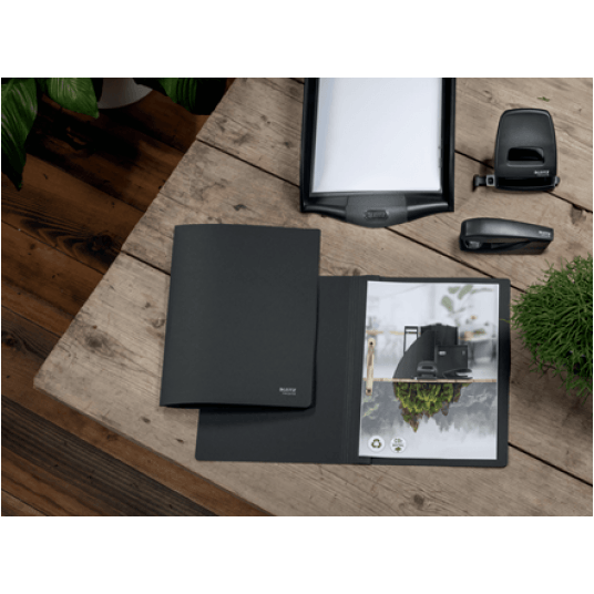 Przyciągający wzrok, najwyższej jakości skoroszyt z płaskim mechanizmem, przeznaczony do oprawy przedziurkowanych dokumentów.