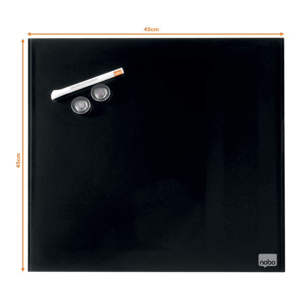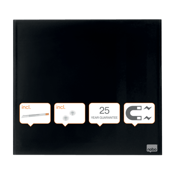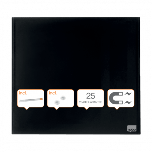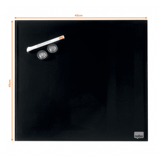 - Szklana, bezramowa tabliczka Nobo łącząca stylowe wzornictwo z funkcjonalną powierzchnią suchościeralną to doskonałe narzędzie do zapisywania notatek. - Magnetyczna szklana powierzchnia zapewnia najwyższą odporność na plamy i zadrapania, a niewielki rozmiar idealnie sprawdzi się do zapisywania notatek czy wiadomości podczas pracy w domu i w biurze. - Po prostu: zapisz coś, zetrzyj i napisz kolejną notatkę. - W zestawie z markerem. - Wymiary 450 x 450 mm.