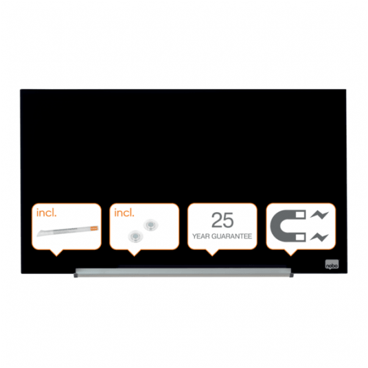 - Szklana magnetyczna tablica suchościeralna prezentuje się niezwykle elegancko i stylowo. System InvisaMount™ sprawia, że instalacja jest łatwa, a mocowania są starannie ukryte z tyłu tablicy.