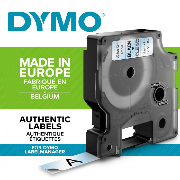 Taśma Dymo D1 12 mm x 7 m czarny na przezroczystym