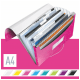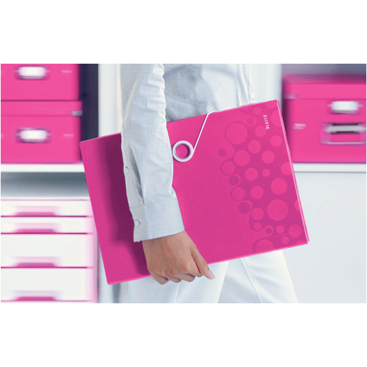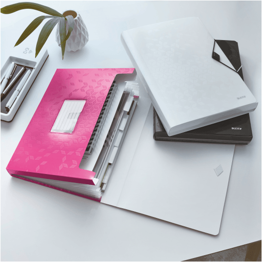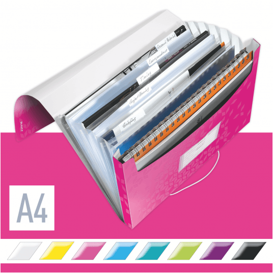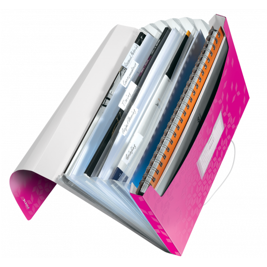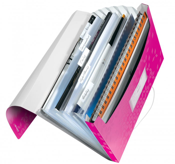 Wysokiej jakości teczka z przegródkami ze stylowym, geometrycznym wzorem idealnie sprawdzi się do sortowania i porządkowania dokumentów. - 6 poszerzanych przegródek z indeksami ułatwiającymi opis i identyfikację zawartości - przednia przegródka służy do przechowywania różnych przedmiotów lub notatnika - praktyczne elastyczne zamknięcie zabezpiecza dokumenty podczas przenoszenia - można w niej umieścić standardowe teczki, koszulki i notatniki - mieści 250 kartek A4 (80 gsm) - wykonana z bezkwasowego polipropylenu, który jest bezpieczny dla odbitek kserograficznych - kolor: różowy metaliczny.