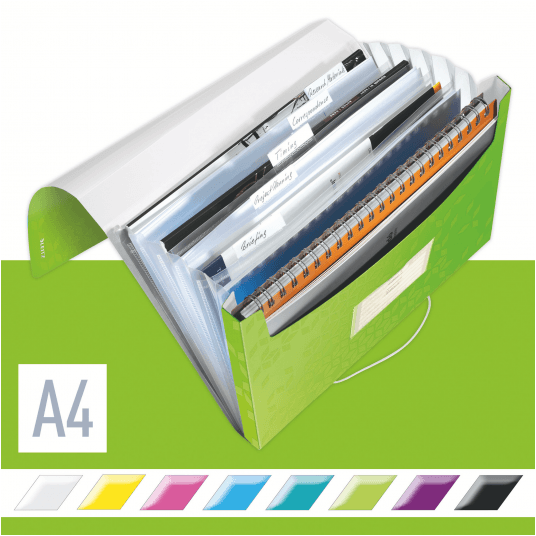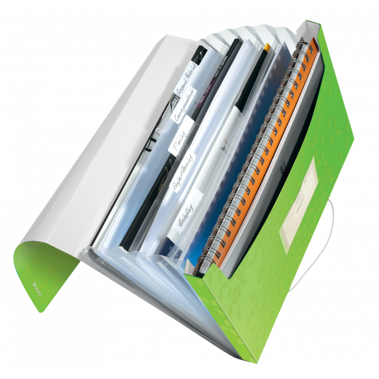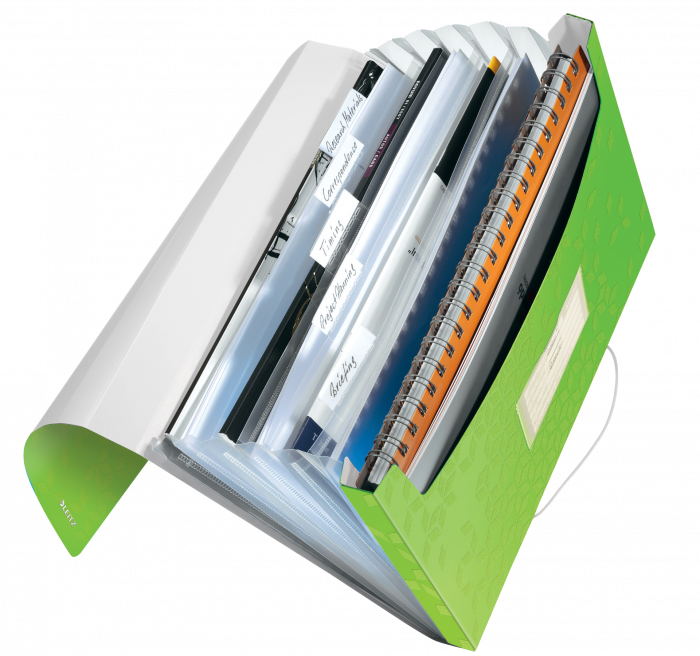 Wysokiej jakości teczka z przegródkami ze stylowym, geometrycznym wzorem idealnie sprawdzi się do sortowania i porządkowania dokumentów. - 6 poszerzanych przegródek z indeksami ułatwiającymi opis i identyfikację zawartości - przednia przegródka służy do przechowywania różnych przedmiotów lub notatnika - praktyczne elastyczne zamknięcie zabezpiecza dokumenty podczas przenoszenia - można w niej umieścić standardowe teczki, koszulki i notatniki - mieści 250 kartek A4 (80 gsm) - wykonana z bezkwasowego polipropylenu, który jest bezpieczny dla odbitek kserograficznych - kolor: zielony metaliczny.