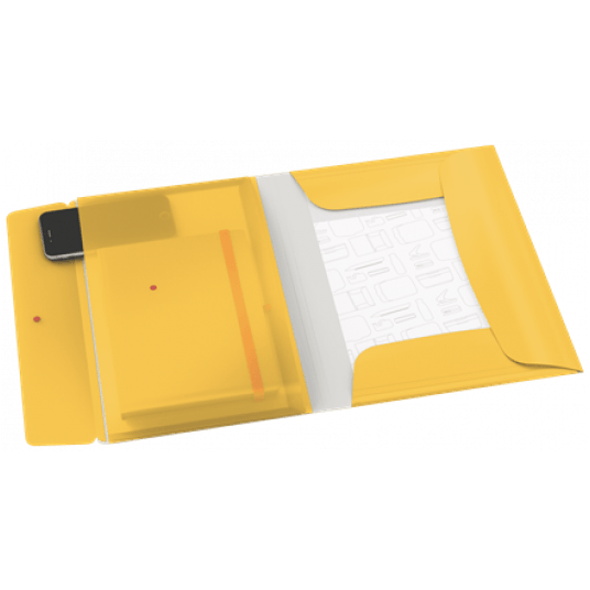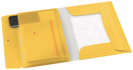 - dodatkowe zagięcia na klapach pozwalają w razie potrzeby zwiększyć pojemność teczki