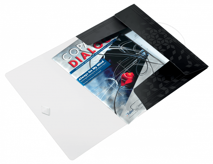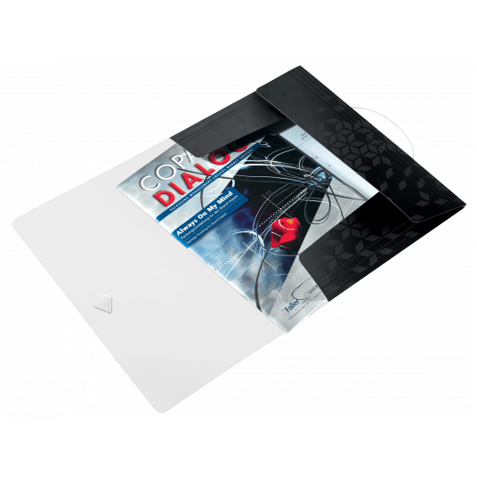 - mieści się w teczce z gumką o grzbiecie 30 mm, w pojemniku na czasopisma i na półce na dokumenty
