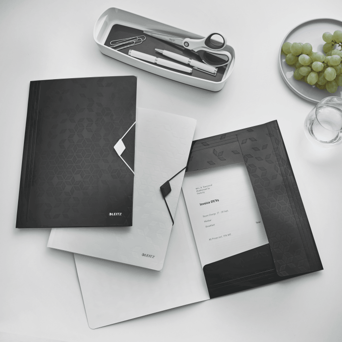 - bigowanie na zgięciach klapek umożliwia zwiększenie objętości teczki